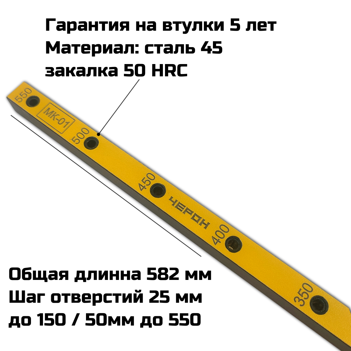 Мебельный кондуктор торцевой шаг 25/50, диаметр втулки 5 мм, под плиту 16 мм.
