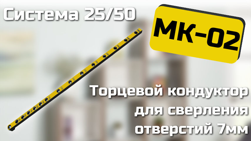 - Мебельный кондуктор кондуктор МК-02 предназначен для сверления отверстий 7 мм в торце плиты 16 мм с шагом отверстий 25/50 мм. (можно сверлить плиты и другой толщины с использованием переходников)