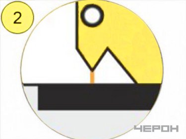 2. Приложите мебельный кондуктор, совместив носик с отметкой на детали.