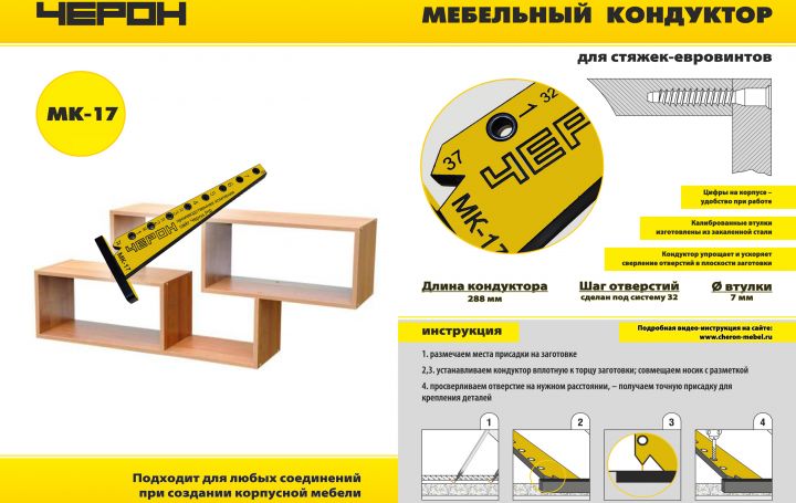 - Кондуктор применим для соединения плит на "евровинт"/"конфирмат"