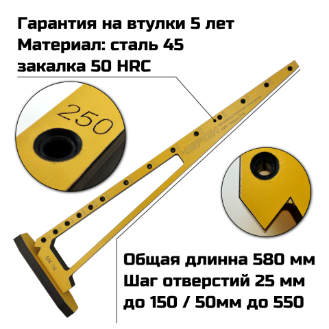 - Мебельный кондуктор угольник МК-18 предназначен для сверления отверстий 5 мм в плоскость плиты 16 мм с шагом отверстий 25/50 мм. (можно сверлить плиты и другой толщины с использованием переходников)