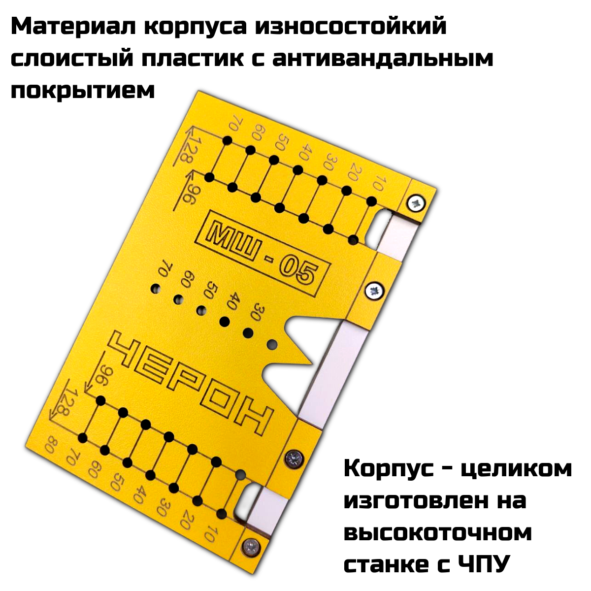 - Мебельный шаблон МШ-05 служит для разметки отверстий под ручки-кнопки и ручки-скобы (96мм и 128мм)