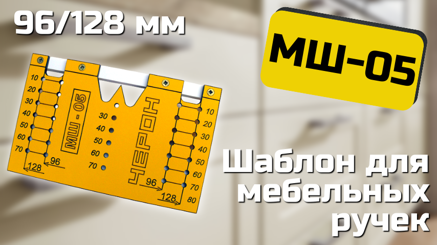 Шаблон для разметки отверстий под мебельные ручки-кнопки и ручки-скобы (96,128,160,192мм )