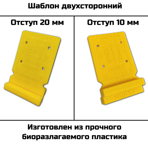 Мебельный шаблон МШ-57 выполнен из прочного, биоразлагаемого пластика и предназначен для точной и быстрой разметки металлического кухонного навеса SCARPI, HAFELE или аналогов с теми же межцентровыми расстояниями.