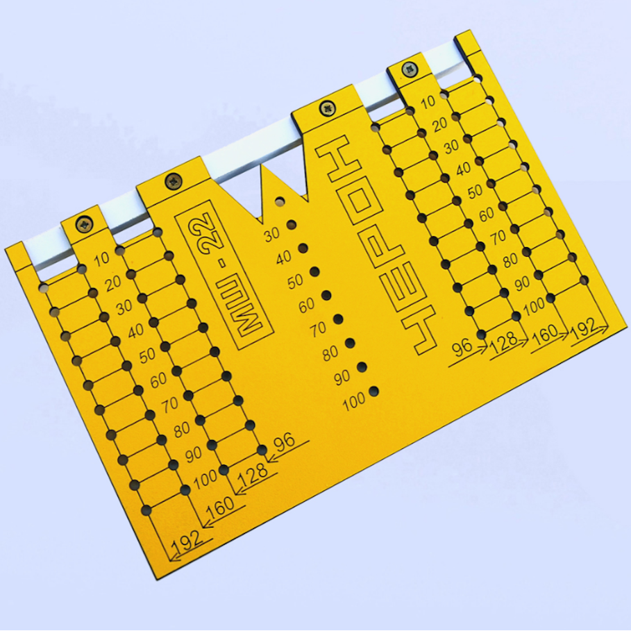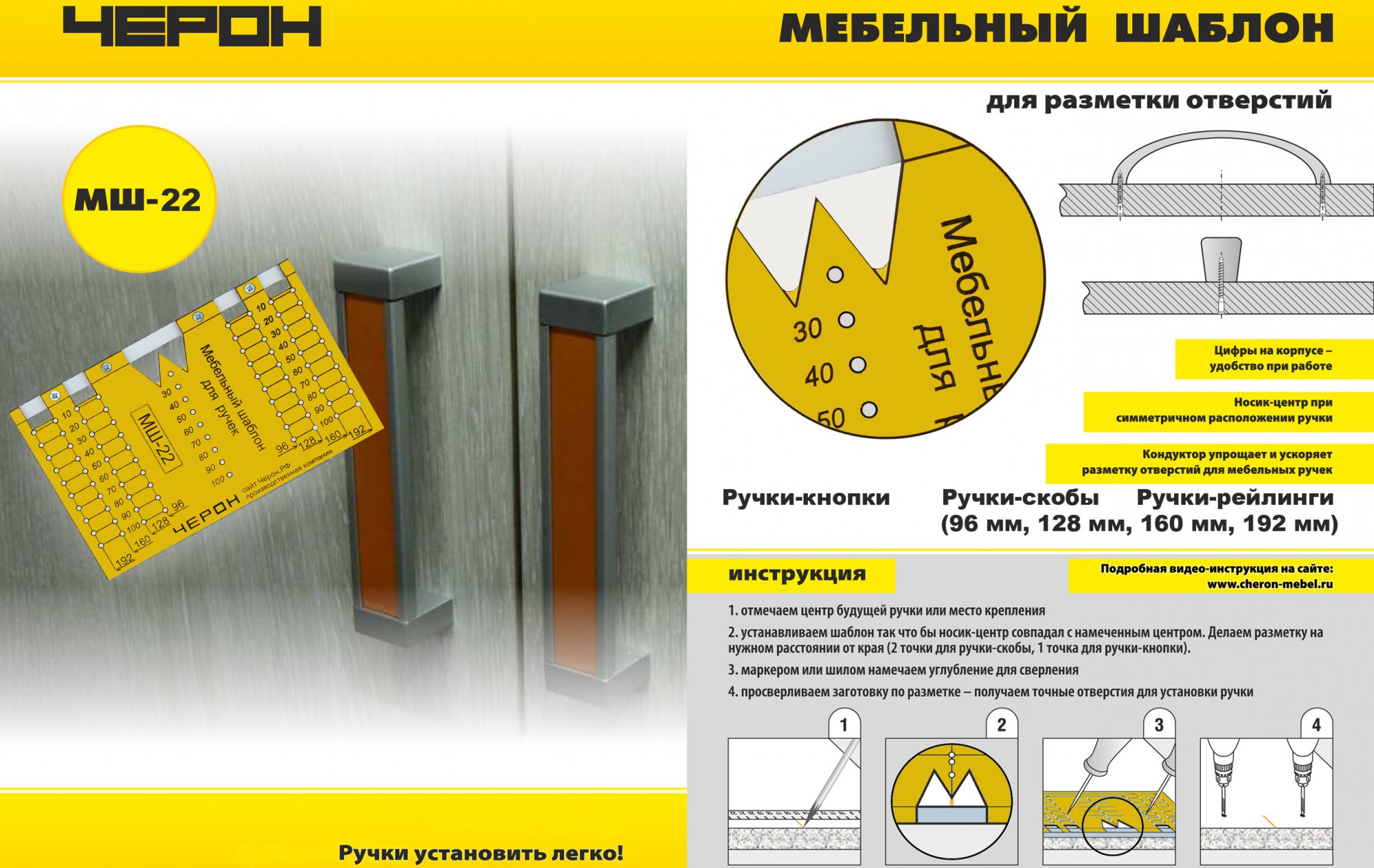 МШ-22, шаблон для разметки отверстий под мебельные ручки-кнопки и ручки-скобы (96, 128, 160, 192 мм)