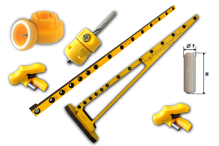 Полный комплект инструментов для точной присадки и создания прочных шкантовых соединений мебельных деталей любой длины
