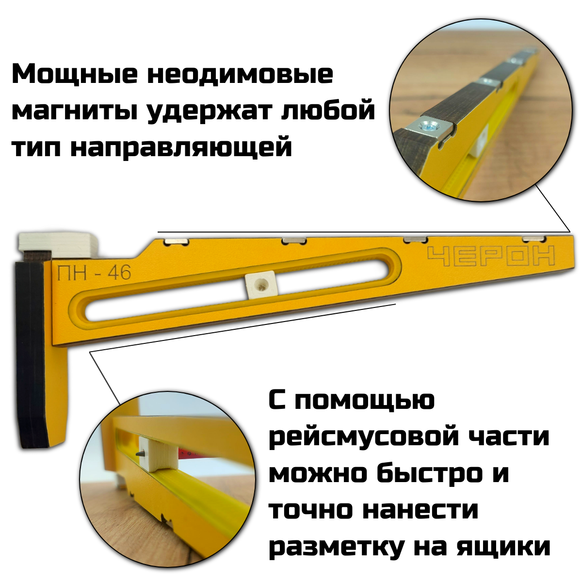 Устройство оснащено 4-мя мощными магнитами, для надежного удержания фурнитуры, можно с легкостью разметить и закрепить направляющие.