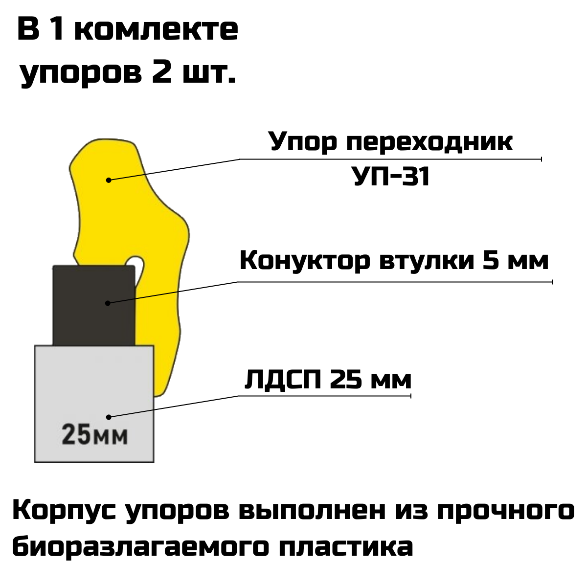 Служит для расширения стандартного кондуктора МК (16 мм), с втулкой 5 мм, до 25 мм. В 1-м комплекте упоров 2шт.